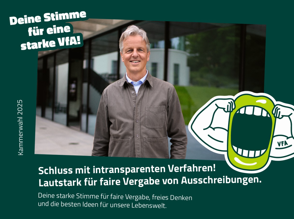 Die Kammerwahlen 2025 bieten eine echte Chance, dieses drängende Thema endlich in den Fokus zu rücken. Die VfA setzt sich seit Jahren für faire Vergabeverfahren ein – mit konkreten Vorschlägen, fundierter Kritik und politischem Engagement. Jetzt ist es an der Zeit, den nächsten Schritt zu gehen.